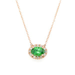 Tsavorite and Diamond Halo Necklace in Rose Gold